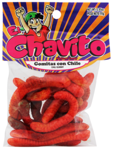 I love the kind of Mexican candy that combines spicy and salty with sweet. Commonly this is with Mexican candies and fruits, but El Chavito has chamoyified various American confectioneries. In this case (er, bag), its your usual glo-worms, but covered in chile powder. Often chamoy stuff is also salty, but these were essentially just sweet and heat. The glo-worms themselves were quite good and were of the common flavors you would expect. They were also like super soft, sometimes gummy candies can be tough to chew but this wasn’t the case. The chile powder went really well with the glo-worms and I really enjoyed it. The chile powder of course adds a heat to them, but also a nice flavor that makes the candy overall my complex. There’s three flavors of the glo-worms. One of them was kind of neutral. The blue and red ones were quite interesting, you usually don’t see chamoy with berry flavors and I liked it a lot. The best though was the orange ones, they have a very bright flavor that goes amazingly with the chile powder. Orange is quite underrated and lemons and limes always get used in things, but the orange and chamoy combo was incredibly good. I don’t really eat spicy food but these did have a heat to them, more so with the orange ones.